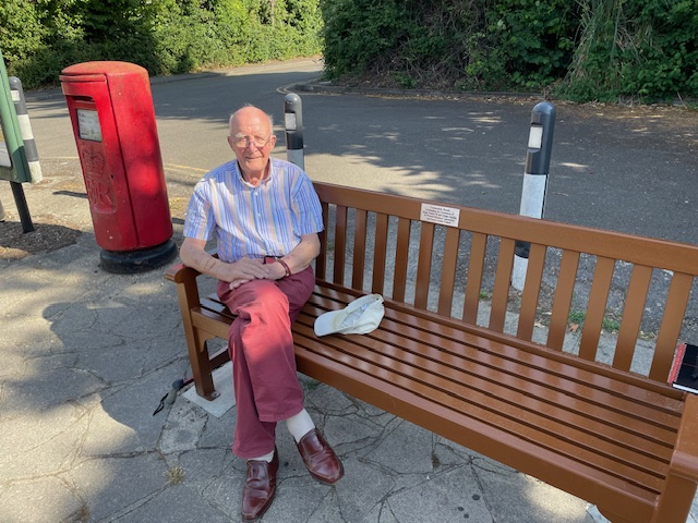 Members of the MRA and representatives from Guildford Borough Council gathered recently for the ceremonial opening of the new bench at the bottom of Merrow Street.