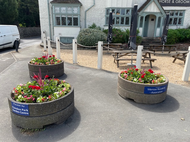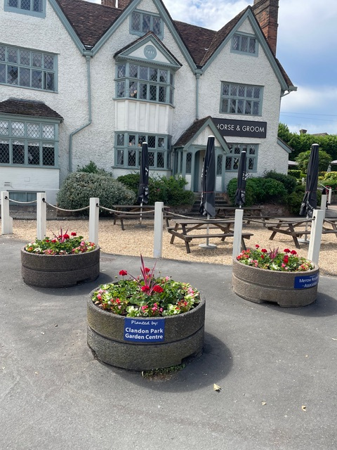 The new planters outside the Horese & Groom pub for 2025 are looking very nice. Thanks to Edwins Clandon Park for the plants and to the team of residents who gave their time to plant them up and then continue to water and look after them.