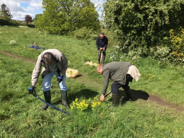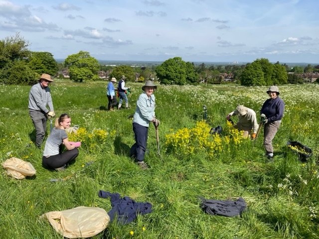 I was really heartened by the response and at least half of the volunteers this morning were from MRA or Merrow residents who have helped before. I was also heartening to see other volunteers (from Surrey Botanical Society and Butterfly Conservation) some from as far away as Ewell and Betchworth, who have helped over the last 8 years, come yet again this year. Thank you for coming to help this morning, Andrew. I have attached 2 photos which you are welcome to use on the MRA website if you would like.