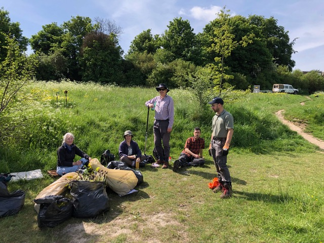 (19 May 2021) Removal of invasive “Perfoliate Alexanders” from Browning’s Down (to West of Guildford Golf Club)